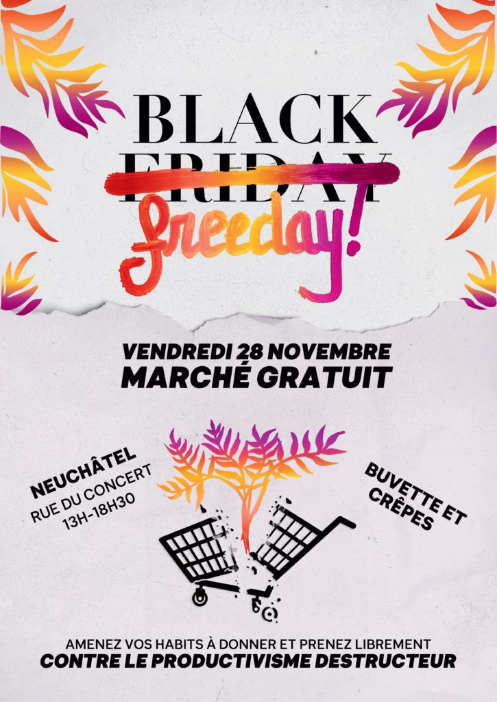 Vendredi 28 novembre, dès 13h: participation au Black Freeday, marché gratuit et initiative anti-consumérisme au cœur de Neuchâtel