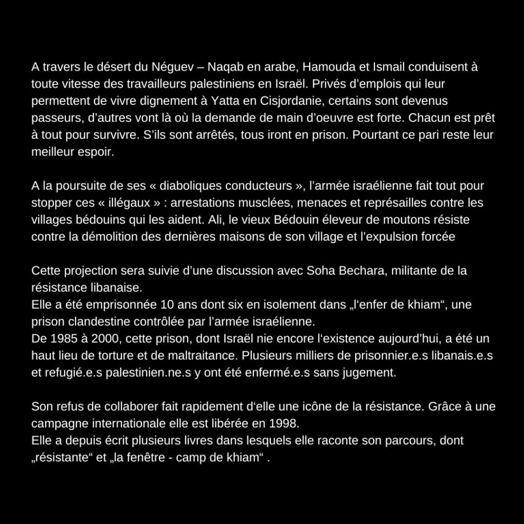 Vendredi 20 février, 19h: suite de la collaboration avec « Palestine: filmer c’est exister », projection de « Ambulance » suivie d’une discussion, sûrement avec « Soignant·es for Palestine » (à confirmer)